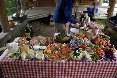 Great pictures…are you bringing home on of those dogs? If not one of those otters would be OK. With that spread of food it looks like some of your campers could put on weight! Thanks for the update…keep on trucking. Love ya,