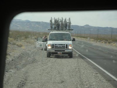 Death Valley lies in between California and Nevada, two very different states with VERY different rules. Can you imagine my surprise while driving a van full of guests back to Las Vegas Dan and I are pulled over by the California Highway Patrol. Apparently the speed limit with a trailer is 55mph. Fortunately our guests thought the entire ordeal was quite comical and took pictures of it. Dan ended up with a ticket, me with a reminder to always wear my seat belt (and ensure everyone in my van is doing the same) and another story to add to the Backroads trip craziness collection.